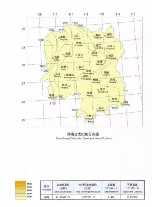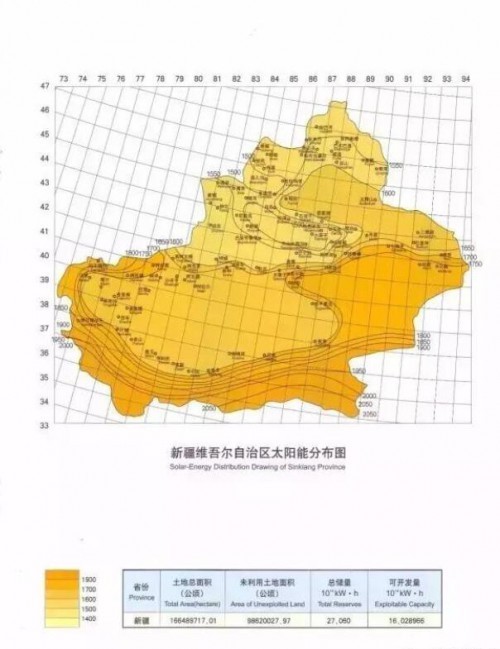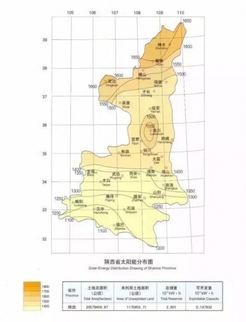 中国年太阳能分布