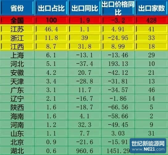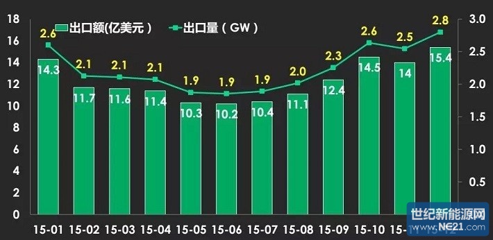 (一)2015年度光伏电池出口情况