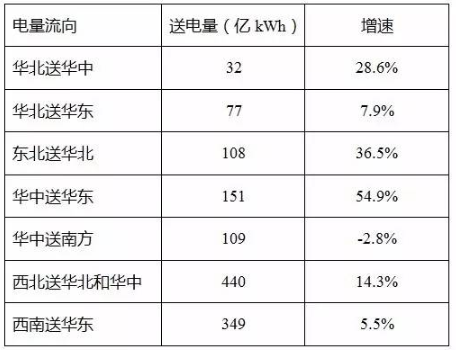 2016年上半年,全国跨区送电完成1505亿kWh,同比增加9.7%。详细情况如下表。