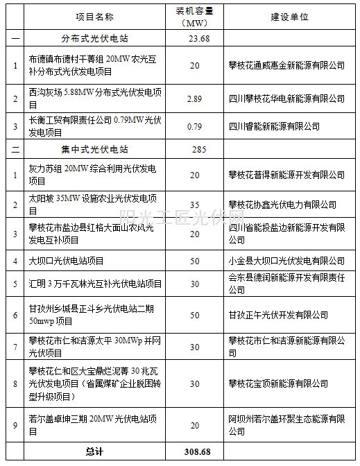 四川省公示2016年度光伏规模指标优选配置项目
