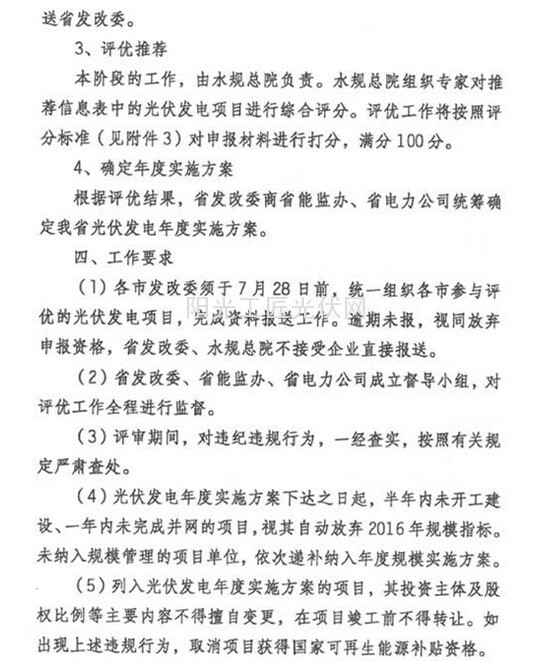 光伏电站竞争性配置规模指标工作的通知》,要求各市发改委须于7月28日前,统一组织各市参与评优的