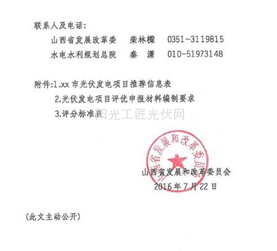 晋发改新能源发[2016]510号 山西省关于开展2016年全省普通光伏电站竞争性配置规模指标工作的通知