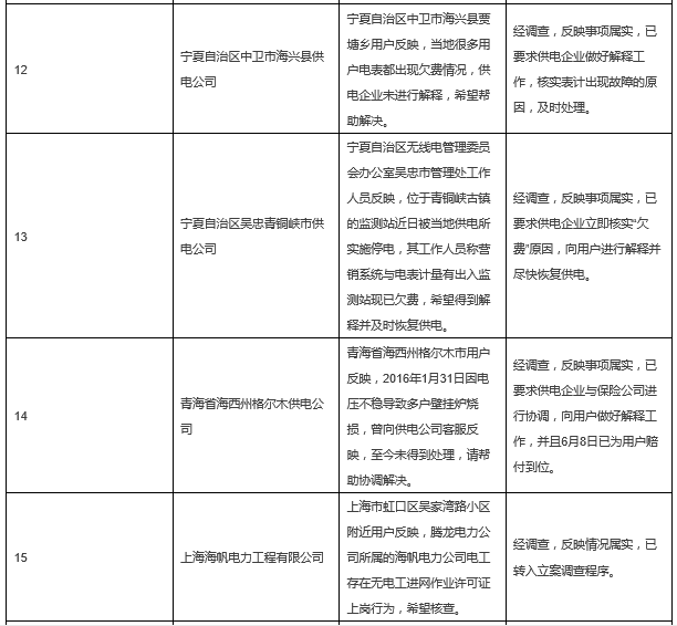 针对群众反映的投诉举报事项,国家能源局派出机构严格依据国家有关法律法规及文件规定进行了处理: