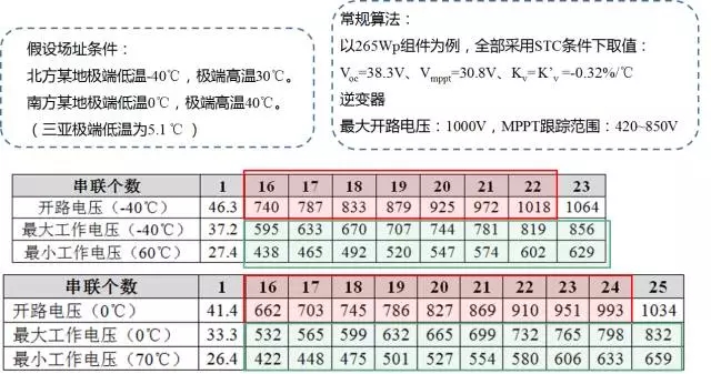 当极端低温为-40℃时,则应采用23串设计方案。