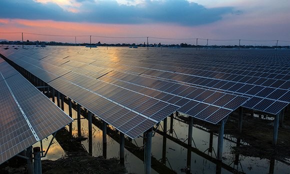 “渔光互补”是光伏发电与水产养殖相结合,渔民可以依托鱼塘资源,在鱼塘上方搭建起光伏电站,实现“水上发电、水下养殖;水上遮阳,水下降温”的模式。