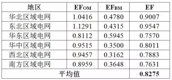 表1:我国不同地区的排放因子(单位:kg/kWh)