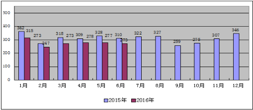 图2:2015年、2016年全省发电平均利用小时数对比(小时)