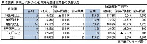 2016年上半年的倒闭企业负债总额为176.32亿日元(同比增加18.6%)。年度最高记录为2015年的213.55亿日元。如果这种情况持续,2016年可能会超过上年,刷新史上最高额。