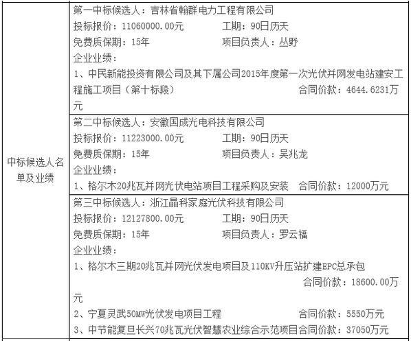 第一中标候选人是安徽天柱绿色能源科技有限公司,预计中标金额:107157600.00元(综合单价:7.26元/瓦)。涉及的业绩为: