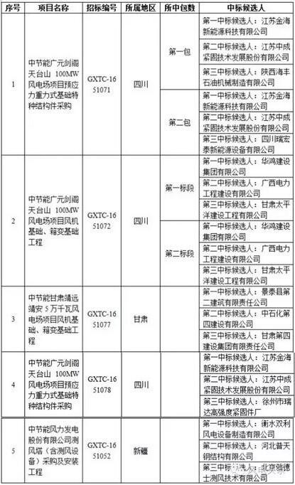7、中节能7月在四川甘肃的5个风电项目中标公示