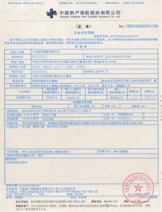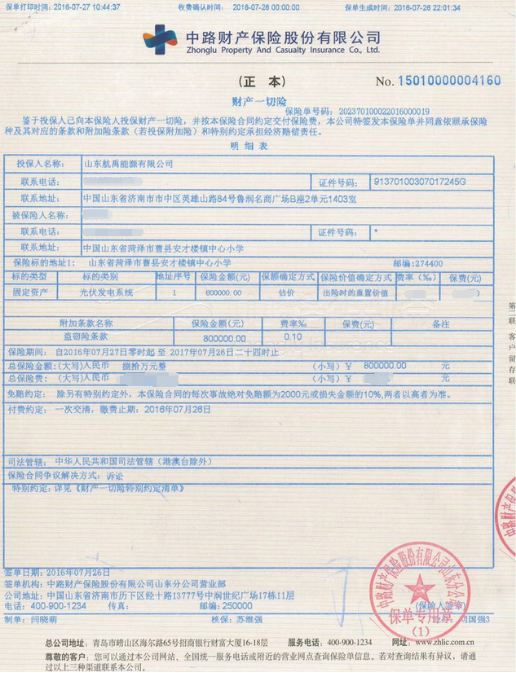 近日,专注于国内分布式光伏发电领域的山东航禹能源有限公司与中路财产保险股份有限公司联合推出国内第一份针对光伏扶贫电站项目的综合运营保险,这将有效解决光伏电站运营期间的设备毁损、盗抢和第三者公众责任等潜在风险,使光伏扶贫项目能真正有效、持续运行20年,造福于民。