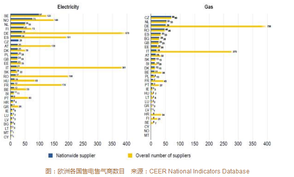 当我们在欧洲习惯了几十个甚至几百个供电商自由选择的时候,也不忘苦笑批发市场上的电价下降仍然还没有传递到终端电价,欧盟电力统一市场十多年前就在议程却进程缓慢。
