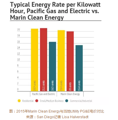 加州2000年的大停电使得加州从自由化的零售市场重新回到了管制市场。但失败并不代表永恒,2001年加州通过了允许CCA(Community Choice Aggregation)的法案,经过9年与Utility的博弈,2010年第一个CCA——Marin County的Marin Clean Energy正式运行。CCA作为公共组织代表当地居民和企业购买清洁电力,提供低价而又多种可再生能源占比的电力套餐给终端用户。这次峰会的晚宴上,加州的多位市长齐聚,说到加州走向可再生能源的进程中不约而同地提到了CCA。至2015年,加州已有25个城市4个镇成立或加入了CCA。