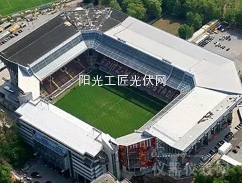 作为压轴大戏,必须介绍一下凯泽斯劳滕球场。2006德国世界杯之际,该球场进行了整体改造,场馆顶上装上了总装机容量1兆瓦的太阳能光伏发电系统,是当时世界上最大的足球场太阳能屋顶发电工程。