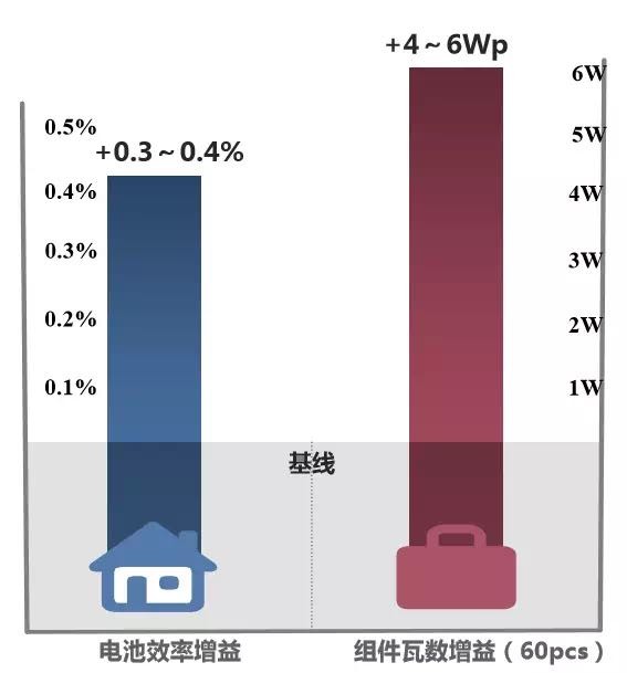 多晶组件(60片)功率+5Wp的解决方案,助力提升多晶组件“领跑者”比例,技术额外加分,并且黑硅可以叠加其他先进技术。