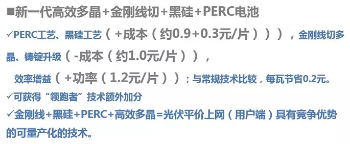 第四、PERC+黑硅+金刚线提供了平价上网的技术途径,是领跑者计划应该鼓励推广的技术。