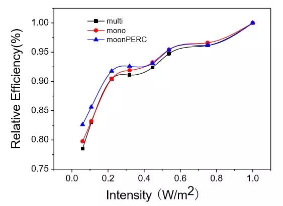 在低辐照度条件下PERC电池弱光响应优于常规电池。