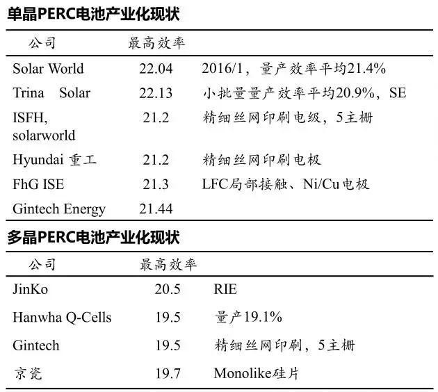 PERC电池由于其工艺相对简单,成本增加较少,是目前和未来的主流量产工艺。