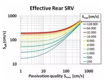 背表面有效复合速率随着金属区域和钝化区域的复合速率的降低而降低。