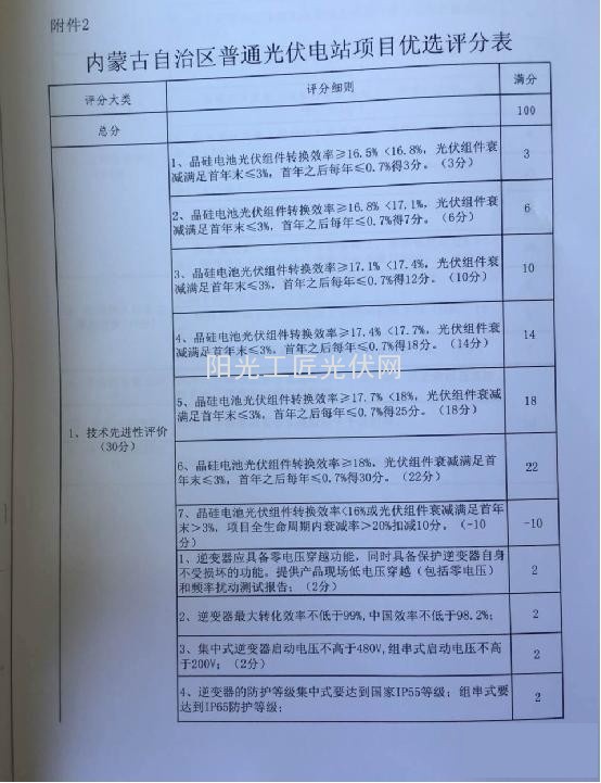 附:内蒙古自治区普通光伏电站项目优先评分表