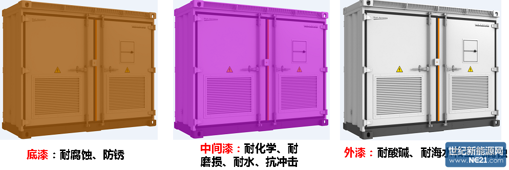 箱式逆变器和水面光伏专用汇流箱外壳采用的镀锌钢板是国内外知名厂家的高品质钢板产品,并施涂三层重防腐涂层(富锌底漆、环氧中间漆、丙烯酸面漆),总厚度达到280微米以上,保证在高湿高盐雾环境下不会腐蚀。