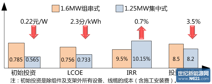 (1)集中式初始投资节省0.22元/W,度电成本LCOE降低2分/kWh