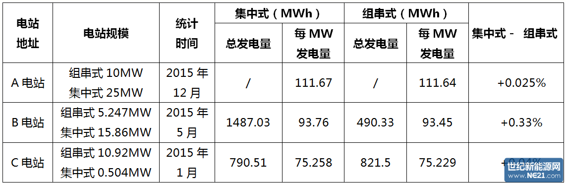 (2)多个实际电站运行结果表明:平坦地面电站,集中式和组串式发电量持平
