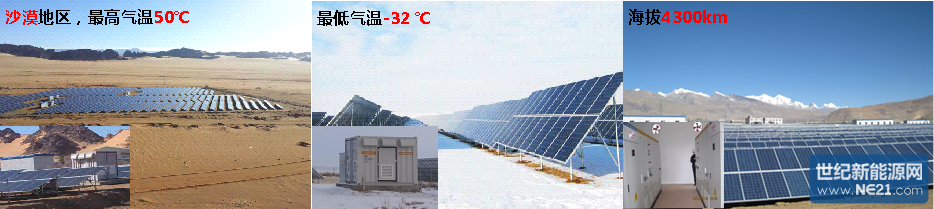 实际应用案例。集中式解决方案不断发展,从最初的集中式逆变器加配电房,发展到以集装箱为载体的箱式逆变器,再到集成中压系统的箱式中压逆变器,整体方案不断成熟完善。集中式逆变器已广泛应用于高温、低温、高海拔、沙漠、沿海等各种恶劣环境中。