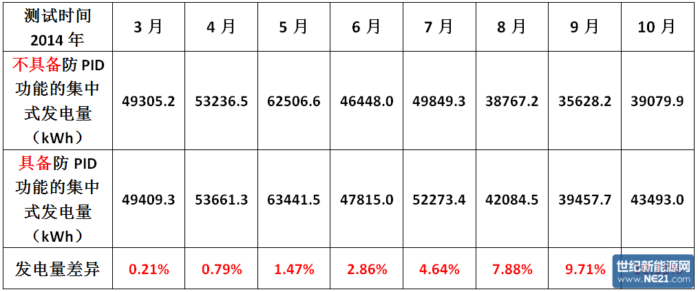高湿环境加剧了光伏组件的PID衰减。电站系统设计和选型时,除了选择具备抗PID能力的组件外,还需要选择具备防PID功能的逆变器。阳光电源集中式逆变器采用了基于虚拟电位专利技术的PID防护和修复解决方案,可有效防止组件在潮湿环境下易发生PID衰减,并可对已发生PID现象的组件进行修复,表5为实际项目中进行对比测试数据,PID防护效果非常明显。