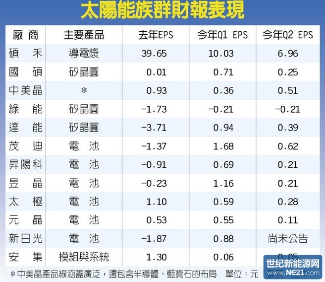 从太阳能族群的半年报,就能清楚看出各家厂商第二季获利急坠的窘境,而第三季,更面临报价跌破历史新低的严峻挑战,除了导电浆厂硕禾之外,其余全部“转盈为亏”已不是悬念,业界担心的是要亏多少?更令人担心的是第四季有没有转机?但以大陆、台湾电池厂不少新产能都将在第四季开出推估,情况并不乐观。