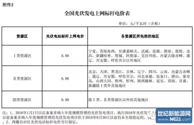 ②如果选择全额上网模式,则所发的电全部按照当地光伏发电标杆上网电价来收购。不同地区电价标准不一样,具体如下表: