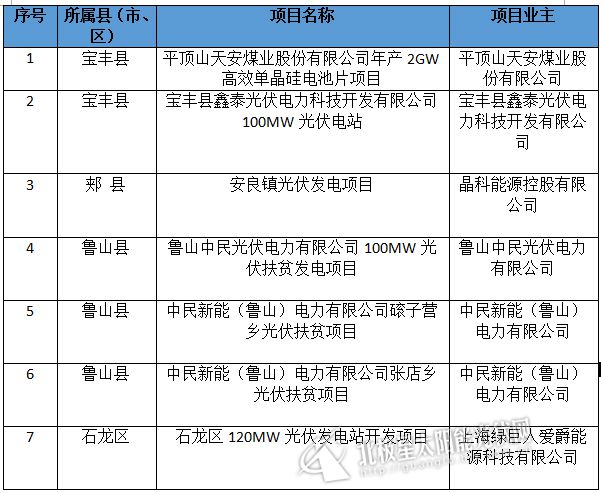 2016年平顶山市第一批重点项目调出名单(光伏)