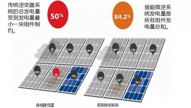 此外,采用微型逆变器的系统,每台逆变器对都具有独立的MPPT功能,将每块光伏组件的输出优化在最大功率点附近。由于没有‘短板’效应,对太阳能组件匹配没有要求,可以最大限度利用每块组件的输出,具有优良的抗阴影效应;加之启动电压低等特点,单日发电时间长,在阴雨天也能够少量发电,在与集中式逆变器系统长期比对后,证明微逆系统具有多达16%左右的电能产出优势。