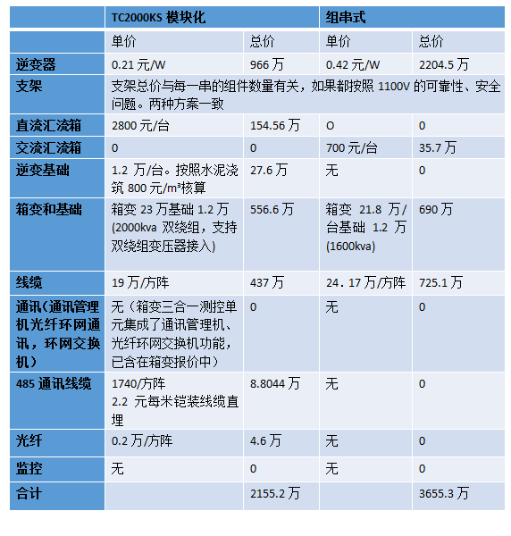 3.1 集中模组式方案相比组串式方案,初始投资成本节省0.3元/W。