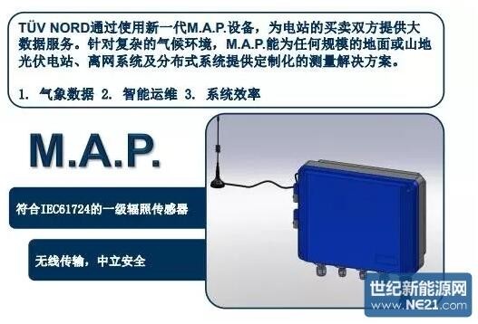 须总说道,“我们今年推出的M.A.P.气象数据平台服务,具备独立性,无限传输和一级精度的传感器,能够帮助电站采集气象数据,进行智能运维和评估系统效率,是业内独创,使分布式电站在远程管理下做到无人值守。所有的这一切都是为了让投资方、业主能够在产业里获得更丰富的资源,在TüV北德第三方的质量风险把控下,保证电站系统效率、达到收益目标。”TüV北德是唯一一家研发此项服务的国际第三方。