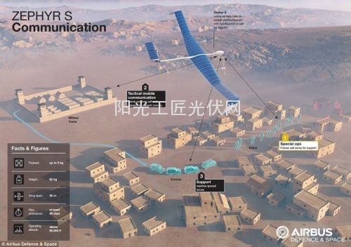 SAS将使用无人机上的摄像头监控地面活动。Zephyr的天线能为搜寻地球更广阔区域提供一个通讯平台。
