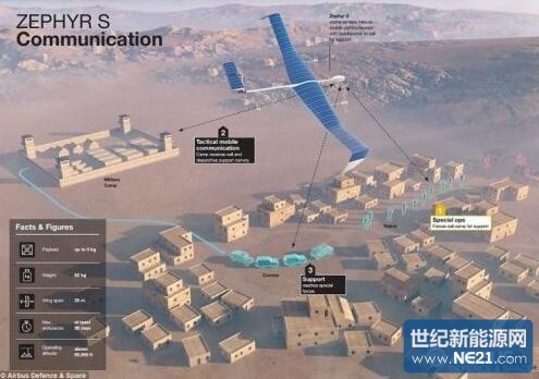 SAS将使用无人机上的摄像头监控地面活动。Zephyr的天线能为搜寻地球更广阔区域提供一个通讯平台。
