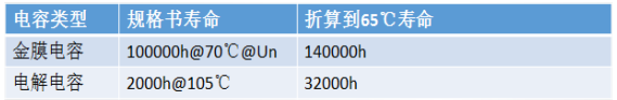 对于组串式逆变器而言,部分组串式逆变器厂家使用不满足长期设计寿命的电解电容,如图3-4所示,根据电容的寿命计算,电解电容的寿命在金膜电容的1/4以下,计算寿命不足8年,电解电容任意工况下理论最大寿命值不足15年。因此,在电站生命周期内需要更换整机3次!极大增加了客户维护投入成本。100MW更换一次需要费用超过4000万元。