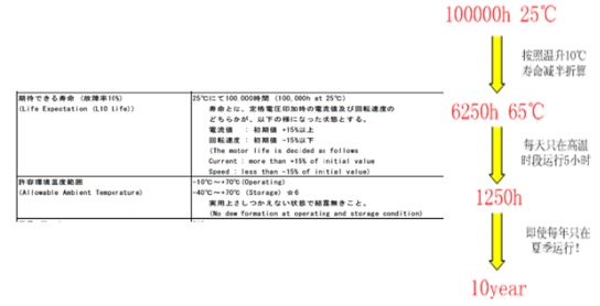 组串式逆变器内部使用轴流风机,小型轴流风机由于内部材料因素的影响,其运行温度范围较小,通常只在-10℃至70℃的范围内,且温度高的情况下工作时,其寿命会急剧降低。在电站环境太阳光直射的情况下,电池板周边温度很高,达到或超过50℃是较为常见的。而逆变器在此时往往功率输出也大,腔体内温度比环境温度高20℃以上,因而轴流风机往往运行在70℃以上的高温环境中。如图3-6所示,使用轴流风机的组串式逆变器在电站生命周期内需要更换风机2.5次!