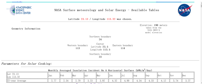 而我们从NASA获取的数据计算月均峰值日照时间3.69h,年总峰值日照时间1346.85h,系统安装倾角20°,折算到倾斜面的峰值日照时间就为1360.45h