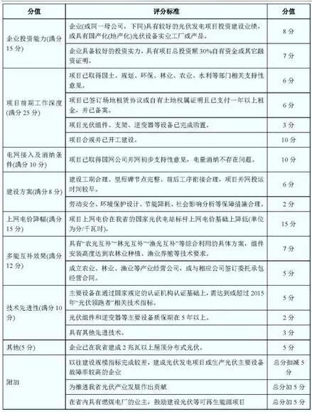 表2:浙江省普通光伏项目竞争性配置评分标准