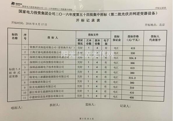 8月17日,国电投2016年度第五十四批集中招标(第二批光伏并网逆变器设备)现场爆出组串式逆变器价格新低——0.31元/W!值得注意的是,投出此次最低报价的为某全球龙头厂商,除此之外还有三家国内主流一线品牌的报价在0.315-0.33元/W区间,共占近一半投标比例,由此组串式逆变器正式拉开0.3元/W时代序幕,顺应了平价上网的潮流需求。