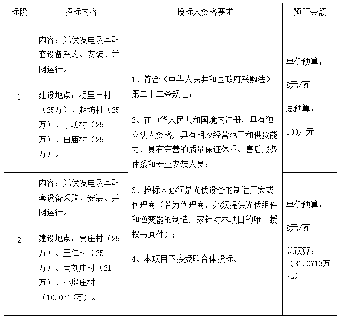 原标题:山东省夏津县南城镇光伏扶贫项目公开招标公告