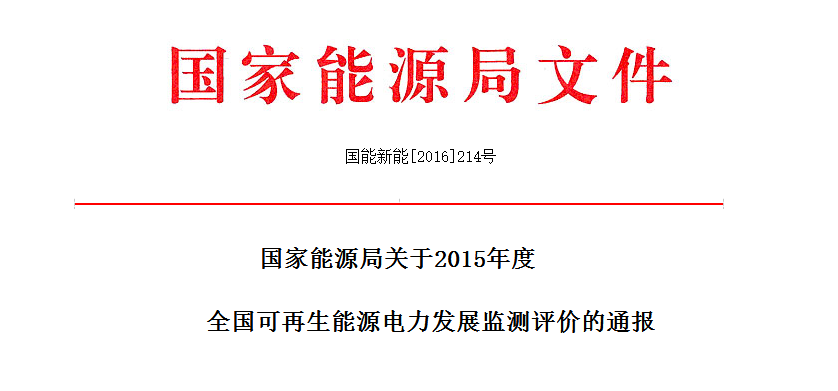 原标题:国家能源局关于2015年度全国可再生能源电力发展监测评价的通报