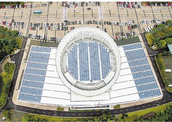 浙江温州市政府办公楼顶上的光伏发电系统