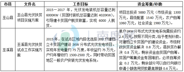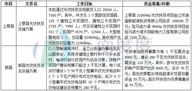 该方案定了两个目标:一是实施分布式光伏扶贫,支持片区县和国家扶贫开发工作重点县(以下简称贫困县)内已建档立卡贫困户安装分布式光伏发电系统,增加贫困人口基本生活收入。二是片区县和贫困县因地制宜开展光伏农业扶贫,利用贫困地区荒山荒坡、农业大棚或设施农业等建设光伏电站,使贫困人口能直接增加收入。