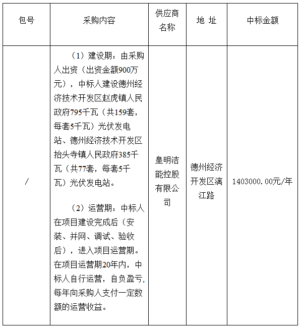 山东德州经开区分布式光伏电站建设与运营采购项目中标公告