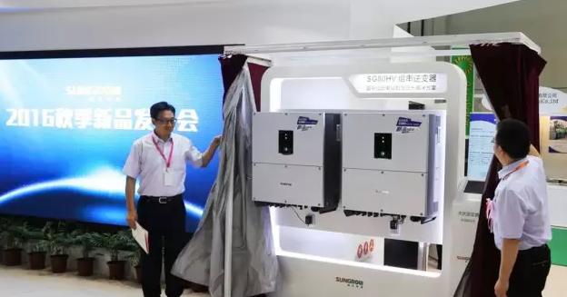 借展会之际,阳光电源举办了“2016秋季新品发布会”,推出全球首款1500V组串逆变器SG80HV,这是继2015年推出首款1500V集中逆变器后又一力作,全球范围内首次将商业化组串逆变器直流侧电压也提升至1500V,额定功率达到80kW,80kW功率也是目前全球最大的组串逆变器。