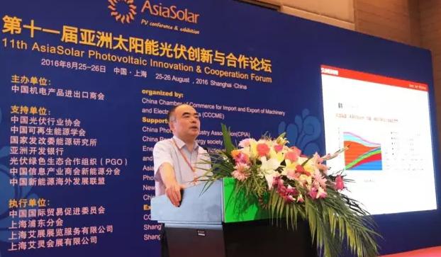 展会同期召开了“亚洲太阳能光伏创新与合作论坛”,阳光电源董事长曹仁贤、高级副总裁赵为和智慧能源产品总监唐永明分别在会上发表演讲。曹仁贤的演讲高屋建瓴,介绍了当前能源结构及未来发展趋势,阐述了实现高比例可再生能源的技术路径和必要的政策安排,重点强调了储能技术和虚拟同步发电机技术,并从政策和体制方面给出了合理化建议。“可再生能源发电在减少碳排放、保护环境方面将起决定性作用,未来的电网系统是‘信息——物理’一体化的能源互联网,储能技术的发展可以改变电网的未来。”曹仁贤表示。