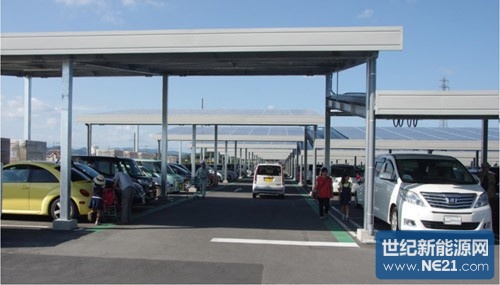 在道之驿“Domannaka田沼”建成的车棚型光伏电站(摄影:Domannaka田沼)